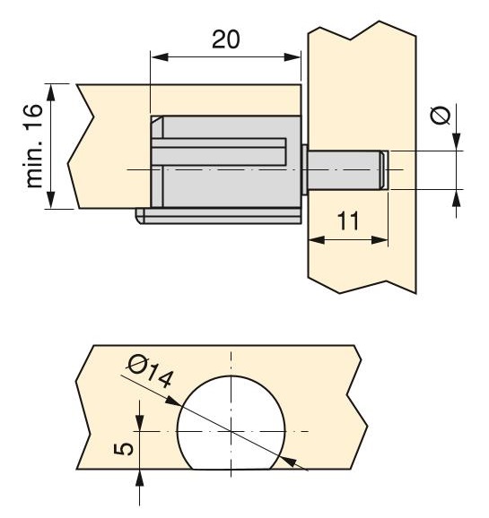 Suporte para prateleira de madeira com perno, em aço e plástico.