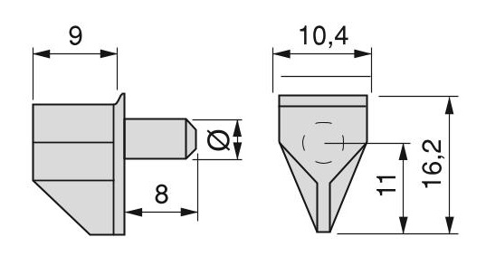 Suporte para prateleira de madeira com perno de metal, diâmetro 5mm, em aço e plástico.