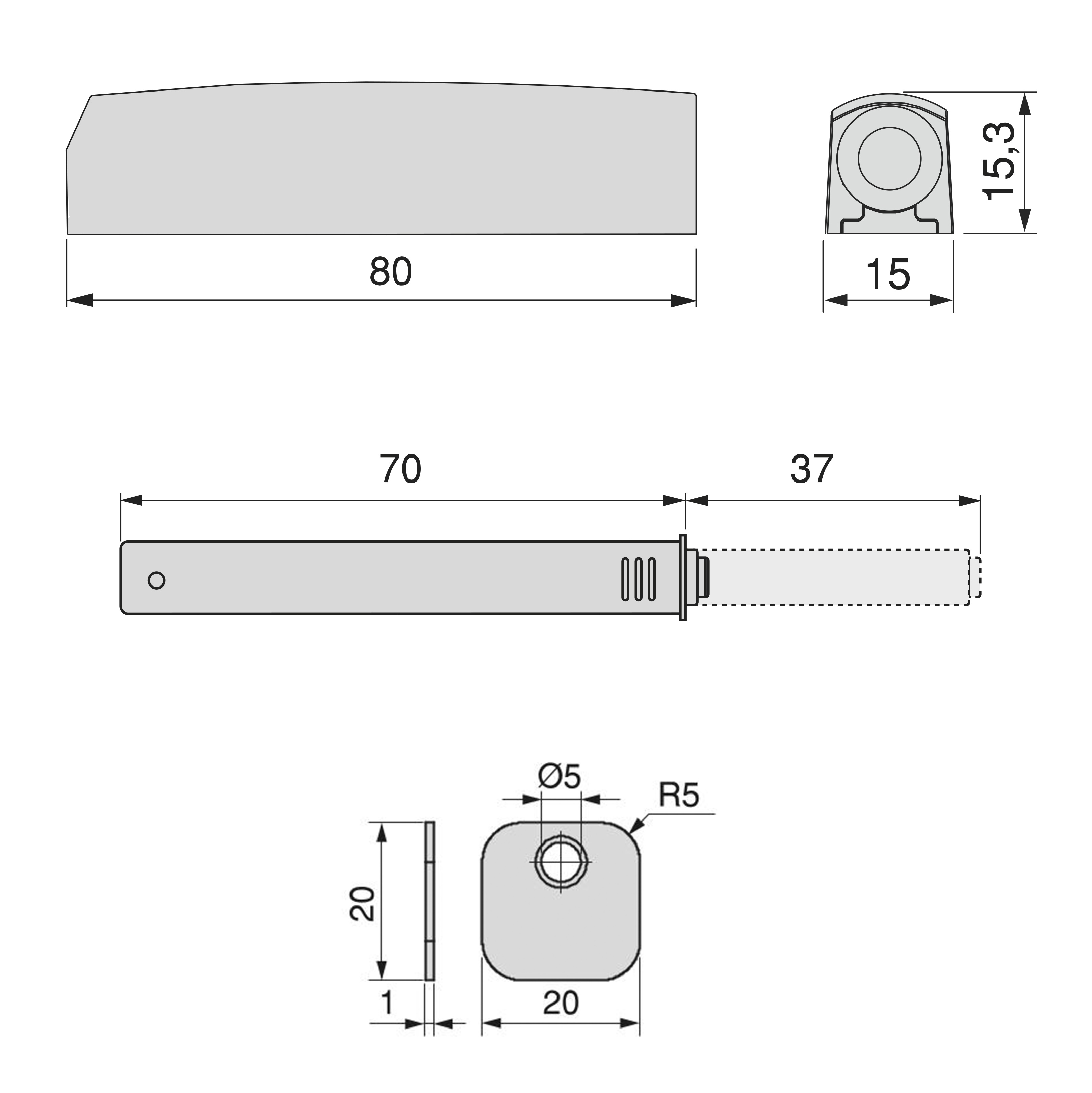 Fecho tic-tac de porta para aparafusar no móvel com regulação Push Lite, comprimento 80mm, magnético 2.5kg, em plástico.