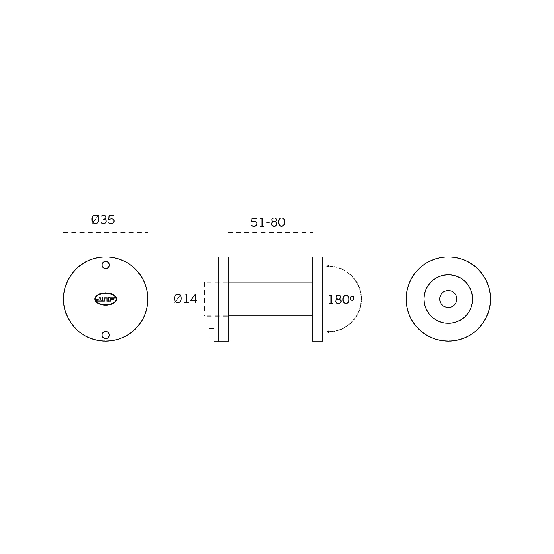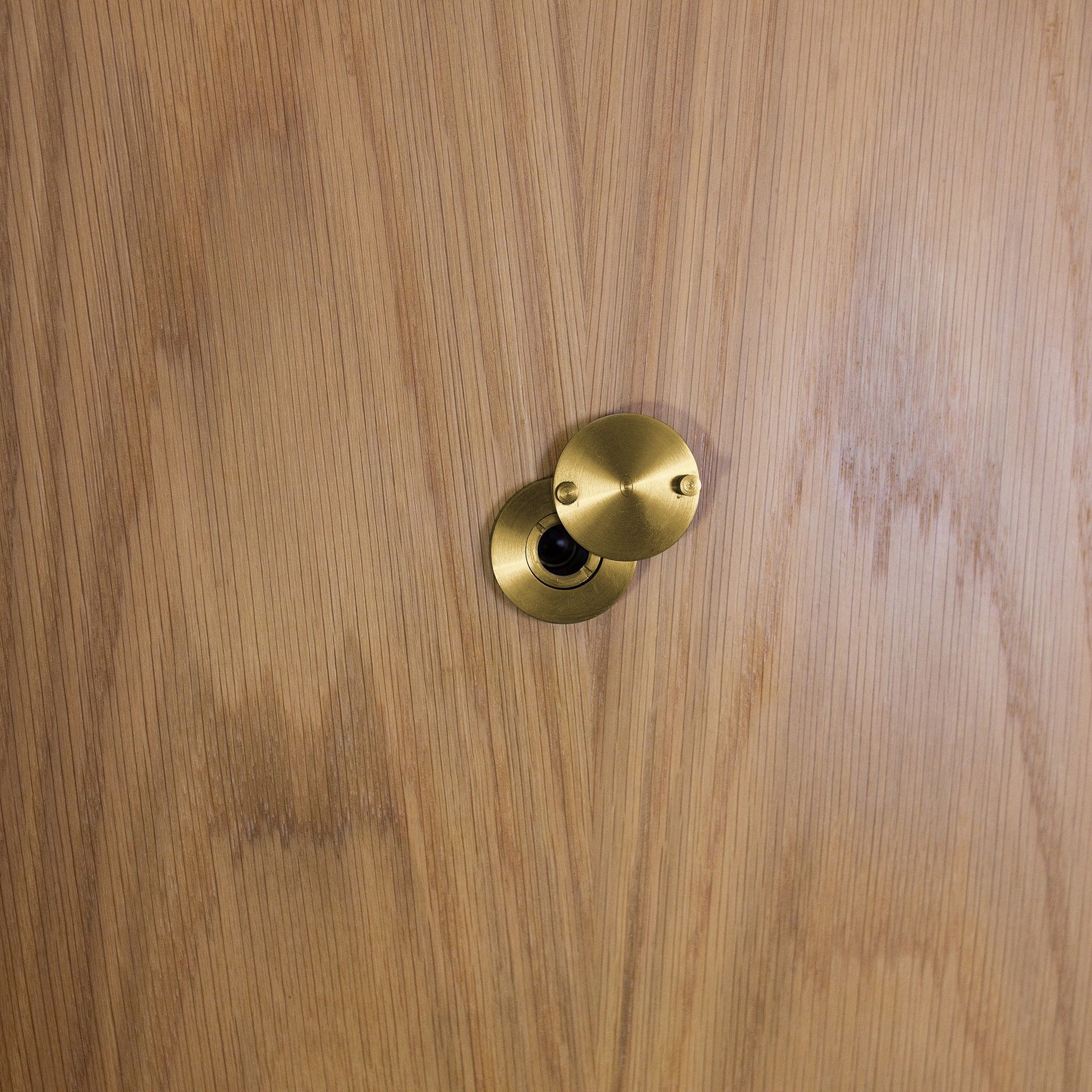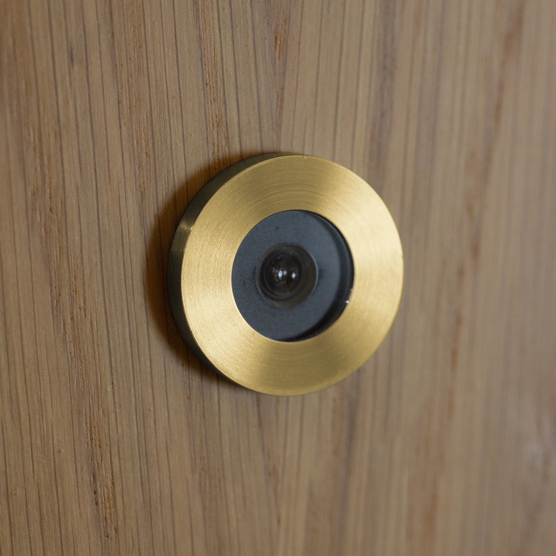 Visor de porta com lente em vidro e plana, corpo em aço inoxidável e ângulo de visão de 200º. Tampa rotativa em aço inoxidáveI e ajustável à espessura de porta.